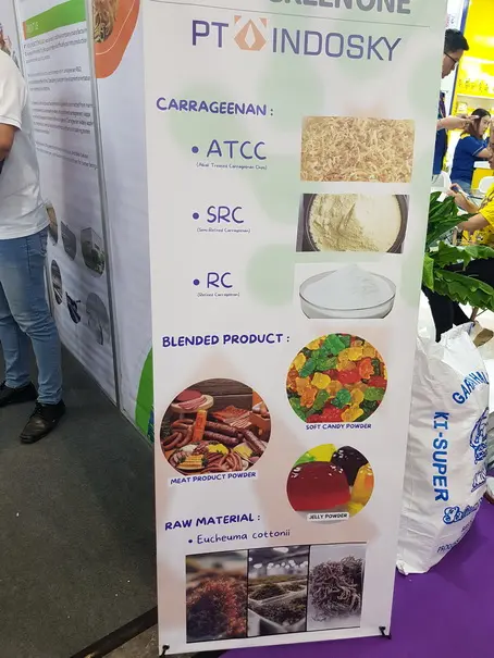 Dalam acara bergengsi ini, PT. Indosky Ekspor & Import dan PT. Greenone Biotechnology turut serta dan mendapatkan kunjungan dari berbagai pelaku bisnis F&B terkemuka. Pada pameran ini, kami mempromosikan produk karagenan yang mencakup:
